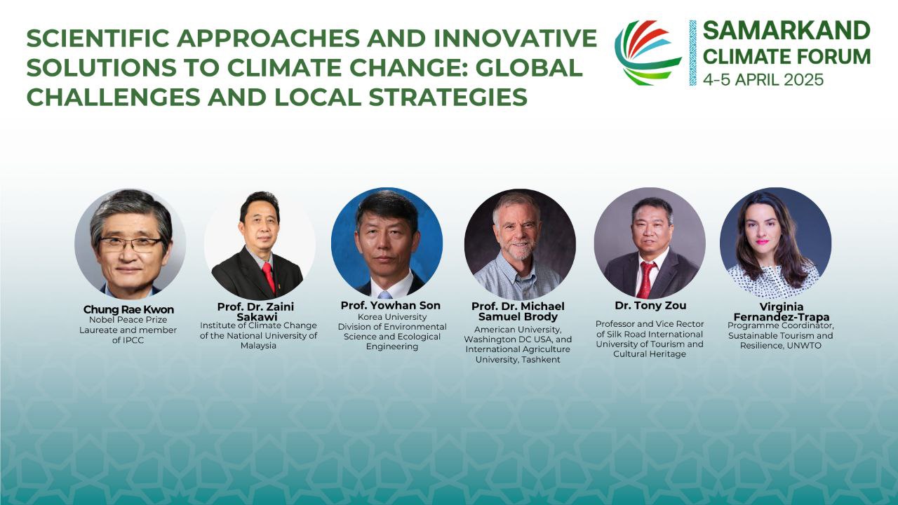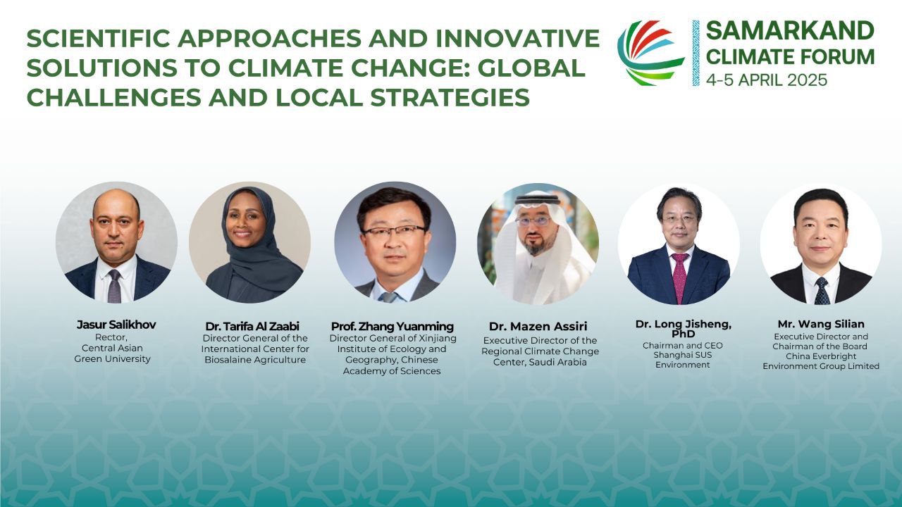 On April 5th 2025, within the framework of the International Climate Forum held at the "Silk Road Samarkand" complex in Samarkand, Green University organized a scientific panel discussion titled “Scientific Approaches and Innovative Solutions to Climate Change: Global Challenges and Local Strategies.”