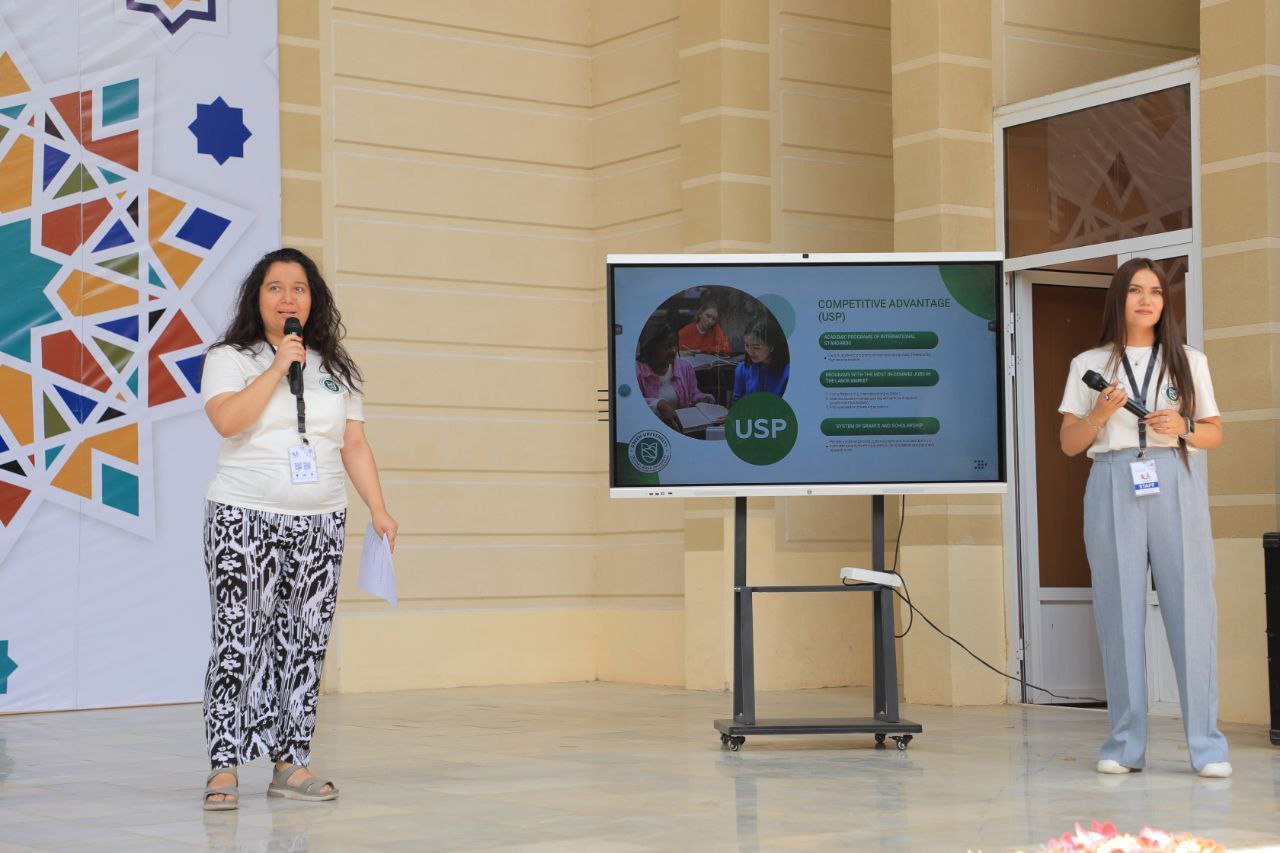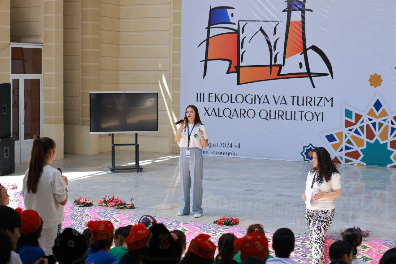 At the International forum “Youth – Builders of the Future” held from August 8-13th 2024, at the Lochin camp in Shahrisabz, Green University conducted promotional activities. The activities titled “Welcome to Green University” was held in the format of a seminar and included interactive elements such as opportunities to address questions of the youth as well as an interesting eco-quiz game to test the participants’ knowledge in ecology. The winners were awarded special gifts with the university’s logo